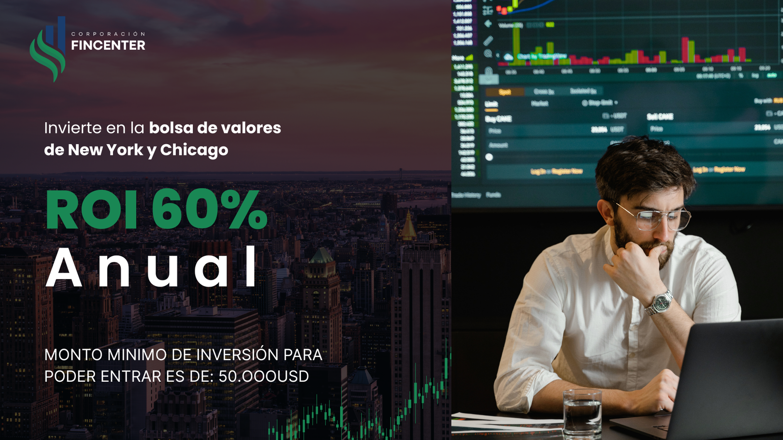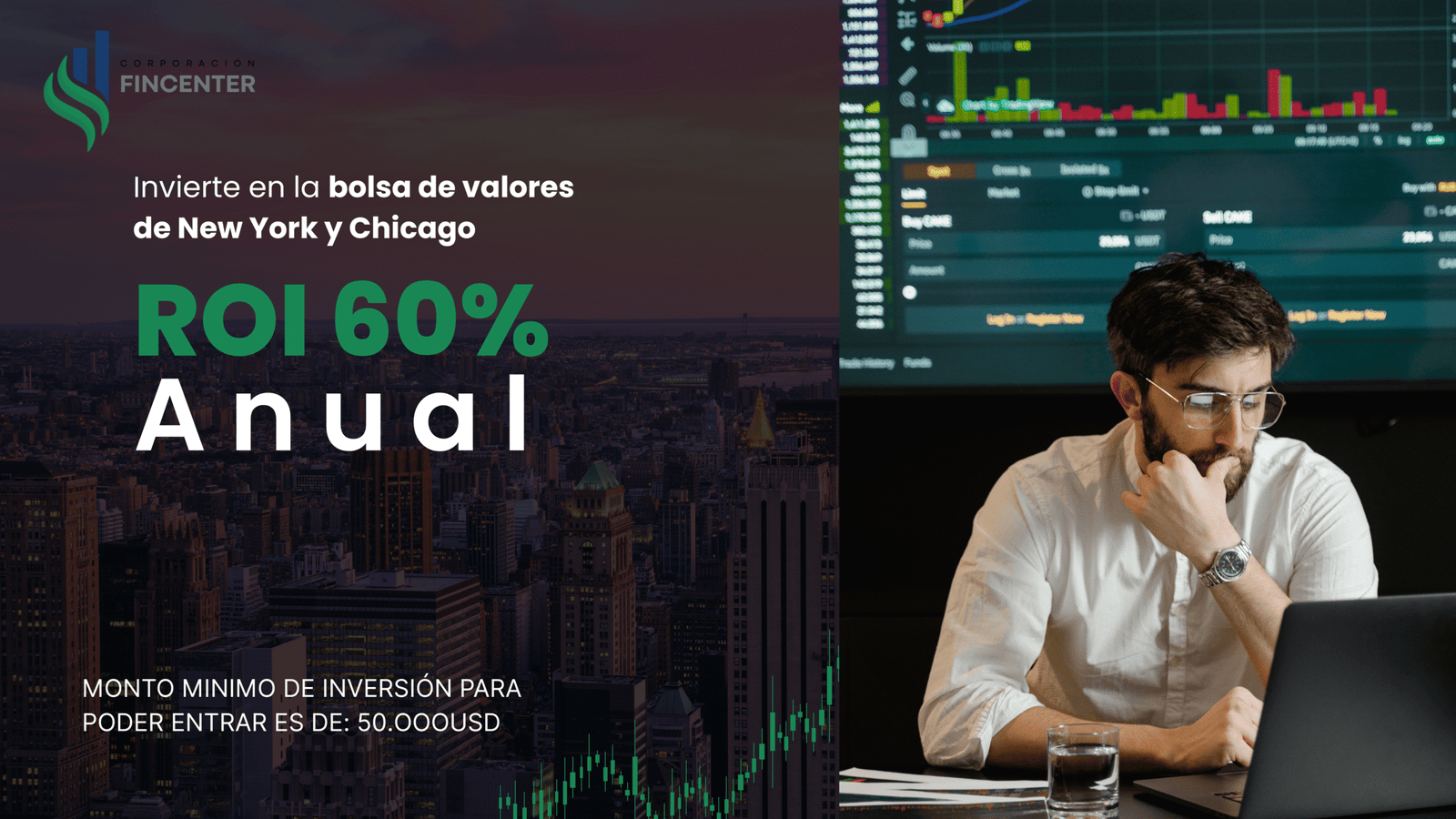 ROI estimado del 60% anual, con un monto mínimo de inversión de 50.000 USD, operando en los mercados de Nueva York y Chicago. El proceso se basa en la asignación estratégica de capital en instrumentos financieros seleccionados, gestionados bajo análisis técnico y fundamental.